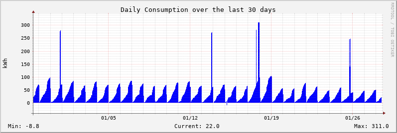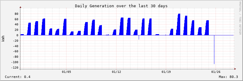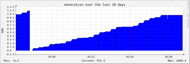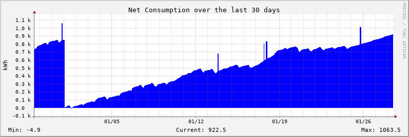The Sunny WebBox realtime data is available here. The source of the graph data below is a TED 5000 monitor with two MTU/CT sets.